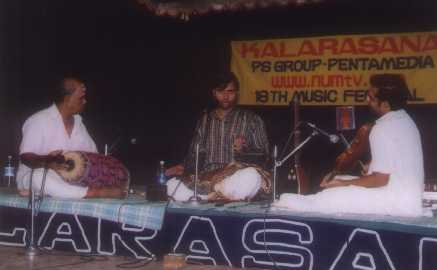 Purandaradasa. An old lady, Vedavalli, went to the stage and met the artistes and expressed her bitterness about the bad attendance by the audience. She also said that people should pay respect to the art, if not for the artiste. Youngsters Kripa and Neeraja who are learning music, said that musicians who perform so well should be encouraged much more. Even though we felt bad about the strength of the audience, we came out with the great satisfaction of listening to a traditional and wonderful concert, and the music lingering in our ears. |