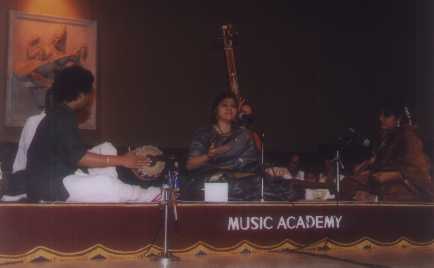 The development of the mighty raga, Todi was superb, full of intrinsic bhava. The execution of the swaras g m d n was blemishless. Sowmya then rendered a Ragam Tanam Pallavi in Atana. Although the raga has its limitations, she handled it with aplomb. The Pallavi revealed her standard and was taken through the usual stages of development, namely, trikalam, and the other creative aspects such as neraval and kalpanaswaras. Dr. Narmada rose up to the occasion fairly well. Though she had a slip or two, which might have gone unnoticed by a commoner, she provides faithful accompaniment, never overstepping the bounds prescribed by the vocalist. The rich tone colour of her violin is enough source of strength to achieve overall success. J Vaidyanathan on the mridangam, acquitted himself thoroughly well. His display consists of soft and decisive strokes. Mayavaram Somu just filled up the gaps. The tone of his Khanjira was found lacking in giving the required blend. |