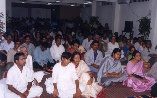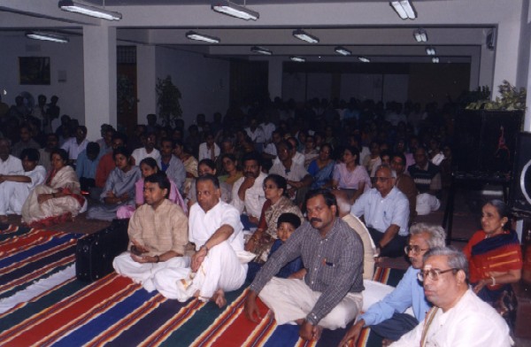 | At the stroke of midnight, everybody, including the audience chanted Om. Then Setalapati Balasubramaniam took over again and did a short namasankeertana. | ||