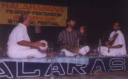 Purandaradasa. An old lady, Vedavalli, went to the stage and met the artistes and expressed her bitterness about the bad attendance by the audience. She also said that people should pay respect to the art, if not for the artiste. Youngsters Kripa and Neeraja who are learning music, said that musicians who perform so well should be encouraged much more. Even though we felt bad about the strength of the audience, we came out with the great satisfaction of listening to a traditional and wonderful concert, and the music lingering in our ears. |