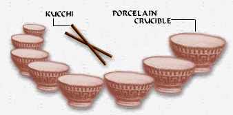 Construction: The Jalatarangam consists of a set of porcelain bowls of varying sizes that are filled with water according to the pitch / note required. These bowls are arranged in a semi-circle in front of the performer in the decreasing order of their size, from left to right. Tuning: Adjusting the volume of water in the bowl changes the pitch. While the bigger bowls produce a deeper sound, the smaller ones produce a sound that resembles the tinkling of tiny bells, giving a very exotic effect.Posture and playing technique: The bowls are struck with two thin bamboo sticks, one held in each hand. Compositions of medium and fast tempo can be played most effectively on this instrument although the very nature of the instrument precludes the execution of certain gamakas unique to Carnatic music. |